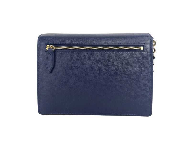 Features: Check Print, Gold hardware, Regency Blue, Interior Zip Pocket