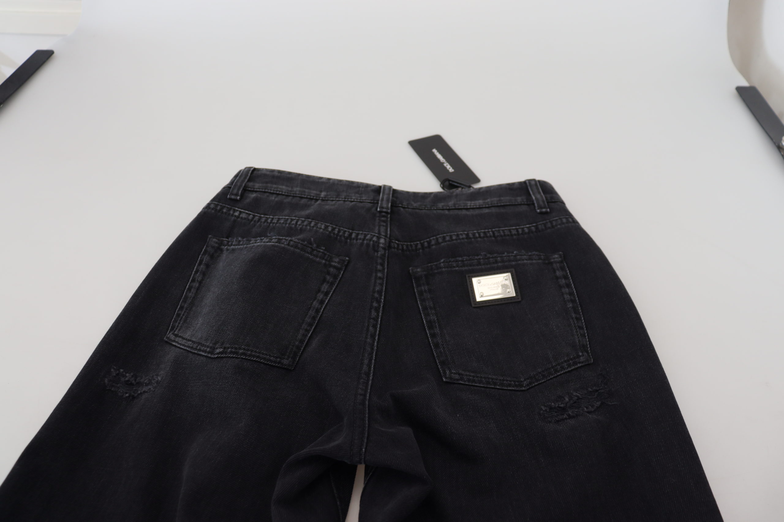 Discover the perfect fusion of high-end Italian craftsmanship and timeless design with these chic black denim pants from Dolce & Gabbana. Ideal for any fashion-forward wardrobe, these jeans boast a sleek black color, a comfortable slim fit enhanced by a touch of stretch, and the iconic logo detailing that adds a signature touch of luxury. Crafted with premium materials, they bring together style, comfort, and the unmatched quality of Dolce & Gabbana. Elevate casual days or style up for evenings out with these versatile jeans, designed to make a statement while offering practical features like a smooth zipper closure.