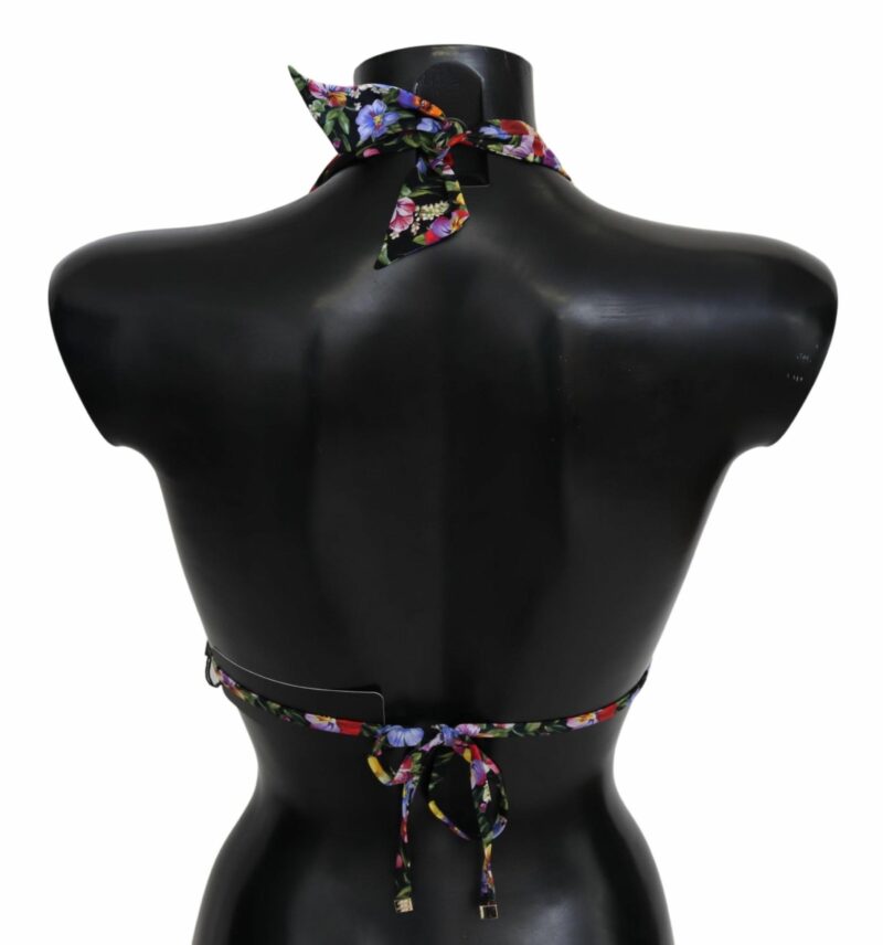 Immerse yourself in the luxury of Italian design with this Dolce & Gabbana bikini top. Featuring a sophisticated floral print, it is crafted with a blend of nylon and elastane for a comfortable, stretch fit. The elegant design is highlighted by a logo-embossed closure at the back and a neck tie for a secure fit. Perfect for making a stylish statement at the beach or poolside.