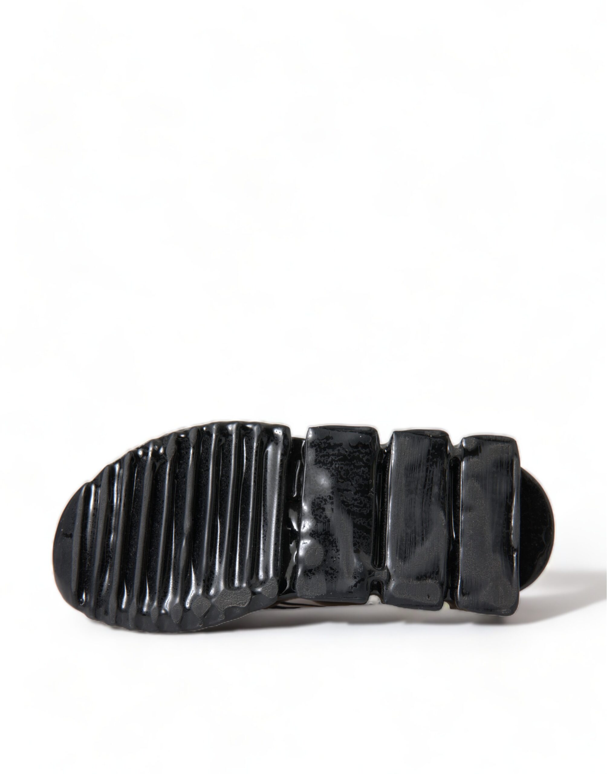 Step out in style with these stunning Sorrento sneakers, expertly crafted by the renowned Dolce & Gabbana. These black and white shoes boast a sleek, round toe silhouette combined with a comfortable slip-on design. Accentuated by elasticated logo tape at the back, they promise a fashion-forward look. With a sturdy rubber sole, and a luxe branded insole, these sneakers offer both supreme comfort and impeccable style. Originating from Italy, they are a testament to exceptional craftsmanship and exclusive design.