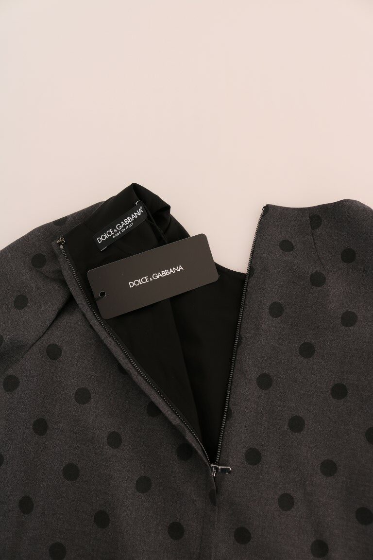 Step out in timeless style with this exquisite Dolce & Gabbana dress, perfect for any elegant occasion. Featuring a charming gray polka-dotted pattern and crafted with the highest standards, this short sleeve, above-knee length dress embodies sophistication and luxury. A full zipper closure ensures a seamless silhouette, while the stretch inner lining offers comfort without compromising style. Proudly made in Italy, this piece showcases exceptional craftsmanship and attention to detail.
