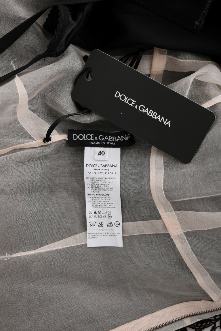 Step out in sophisticated elegance with this Dolce & Gabbana maxi shift dress, perfect for any formal occasion. The dress features a full-length design with a sleek black palette and an exquisite floral applique ricamo, adding a touch of opulence and detail. Manufactured with premium craftsmanship in Italy, this garment includes a comfortable white silk stretch inner lining to ensure a luxurious feel against your skin. With a convenient full zipper closure on the back, this dress is both stylish and practical.