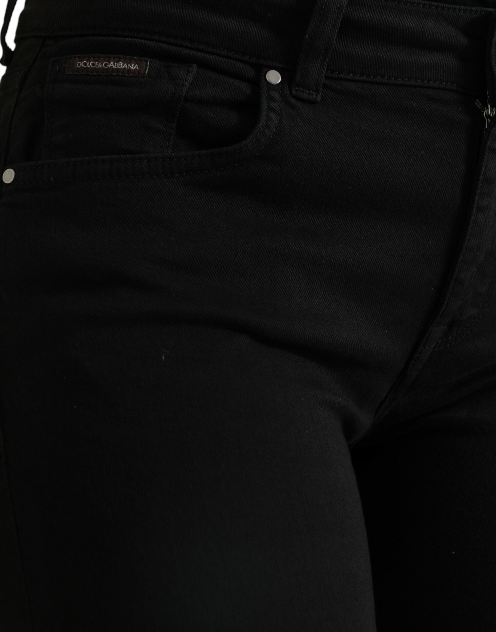 Introducing our stunning Dolce & Gabbana black stretch jeans, a perfect blend of luxury and comfort. These jeans are designed to flatter with a mid-waist cut and the right amount of stretch, ensuring a snug yet comfortable fit. The classic black hue makes them highly versatile for an array of occasions. Meticulously crafted in Italy, they embody sophistication with subtle logo details and premium workmanship.