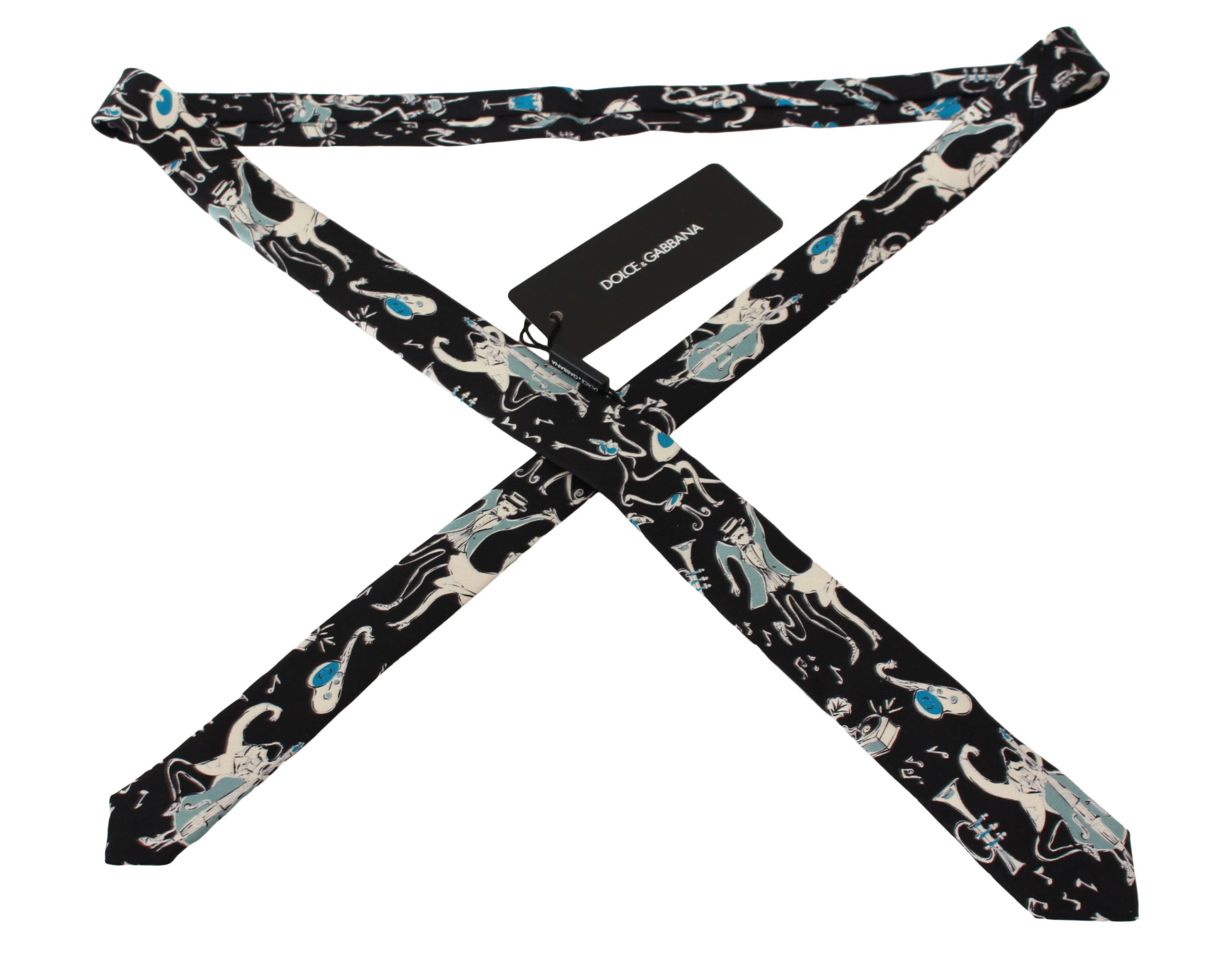 Discover the epitome of luxury with the Dolce & Gabbana exclusive black neck tie, featuring a refined music instrument print. Perfect for adding a touch of sophistication and style to your formal wear, this 100% authentic silk tie is a must-have accessory for any fashion-conscious individual.