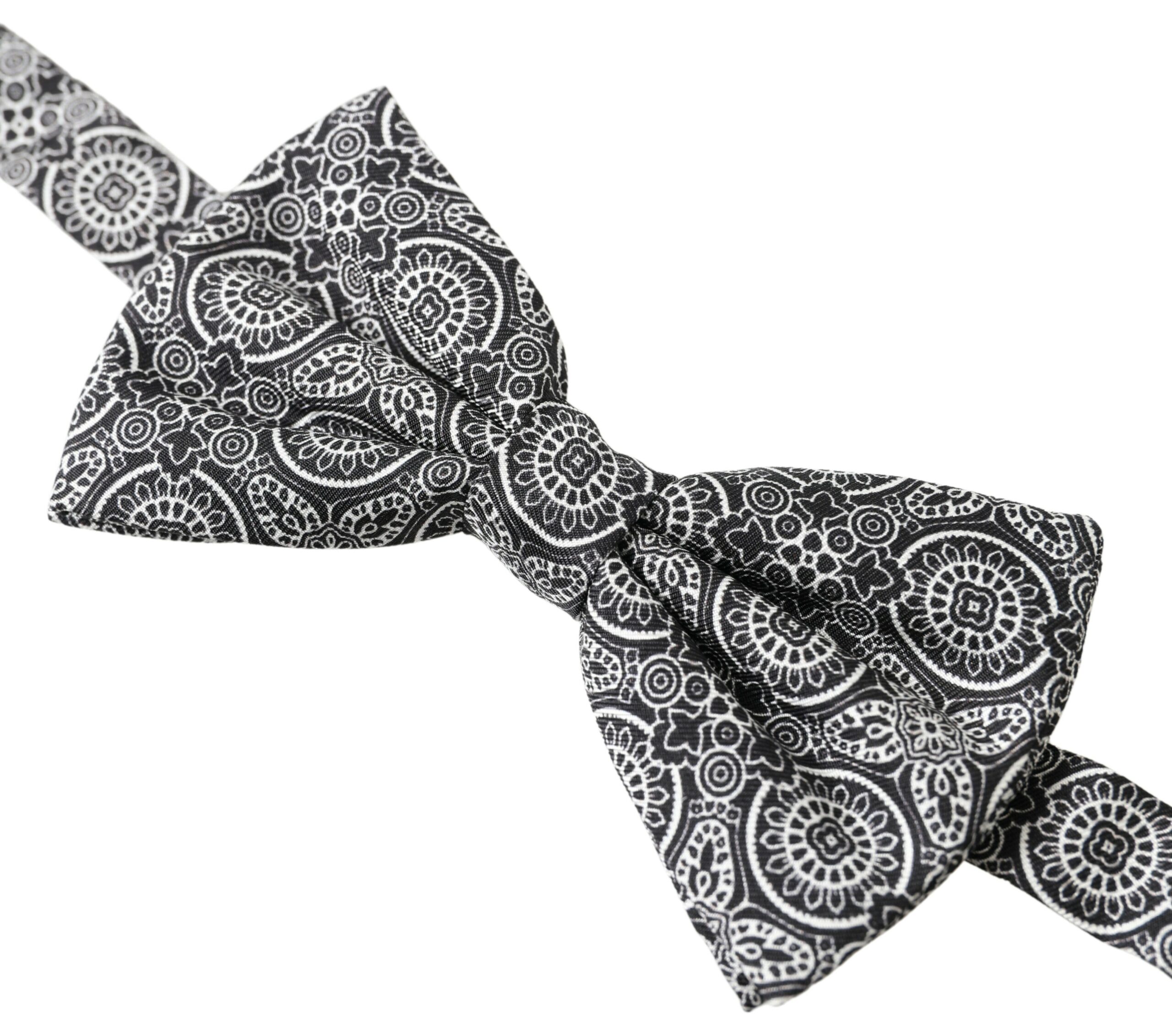 Exude sophistication and timeless style with this exquisite bow tie from the prestigious collection of Dolce & Gabbana. With its eye-catching black and white fantasy pattern, this 100% silk tie adds a touch of luxury to your formal attire. Crafted in Italy, it showcases exceptional craftsmanship and an elegant tied model, perfect for high-class events and important occasions.