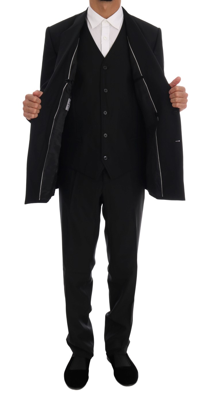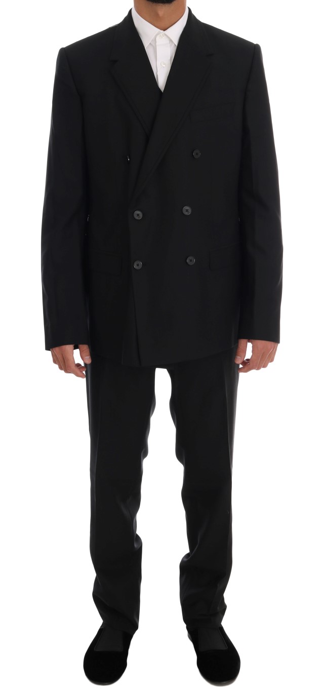 Discover sartorial elegance with this stunning Slim-Fit Three-Piece Suit from Dolce & Gabbana. Crafted from luxurious 100% wool, this double-breasted suit features a sleek blazer, a sophisticated vest, and stylish pants, all in a classic black hue. With a slim-fit design, two button-closure on the blazer, and meticulous Italian craftsmanship, this suit is as exclusive as it is timeless, perfect for making a statement at any high-end event or business gathering.