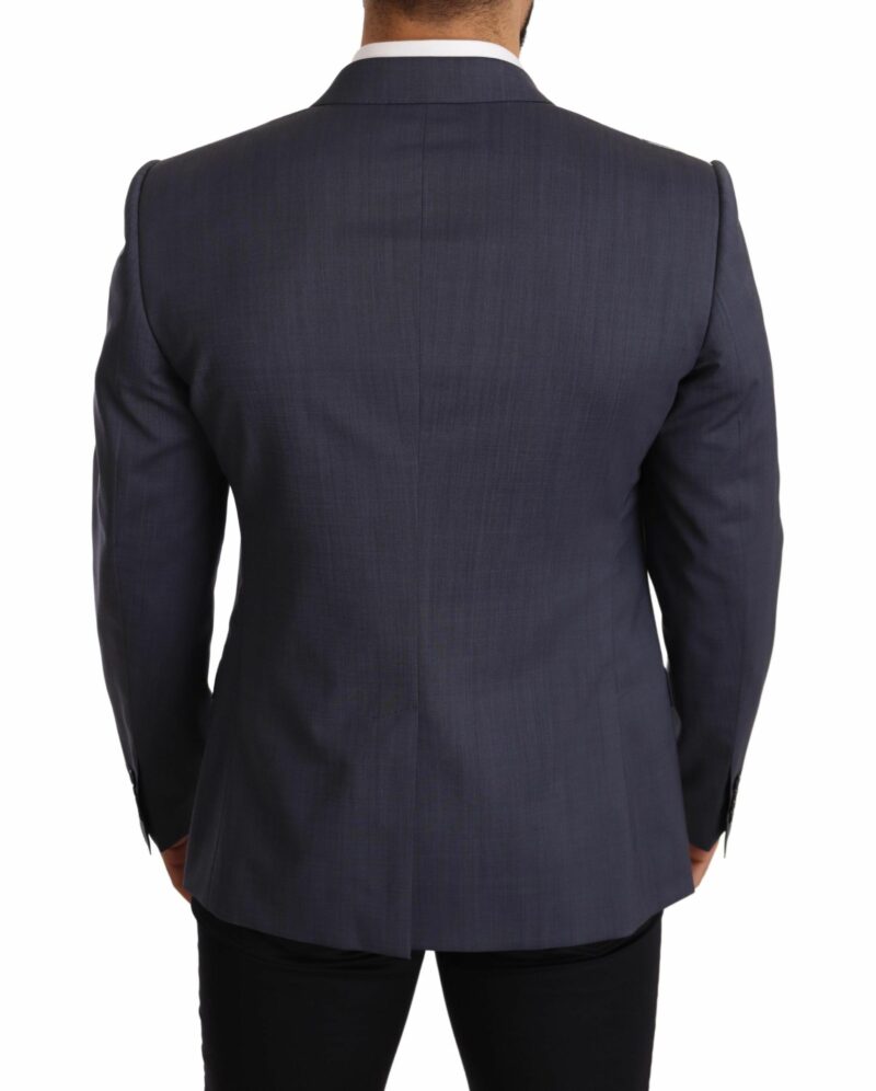 Indulge in the epitome of Italian craftsmanship with this absolutely stunning Dolce & Gabbana MARTINI blazer jacket. A symbol of luxury, this brand new item with tags makes a striking impression with its sophisticated blue hue and slim-fit silhouette. Perfect for formal occasions, the single-breasted, two-button front exudes classic elegance. With a dedication to exceptional quality, it features three sleek exterior pockets, three practical interior pockets, and exquisite logo detailing.