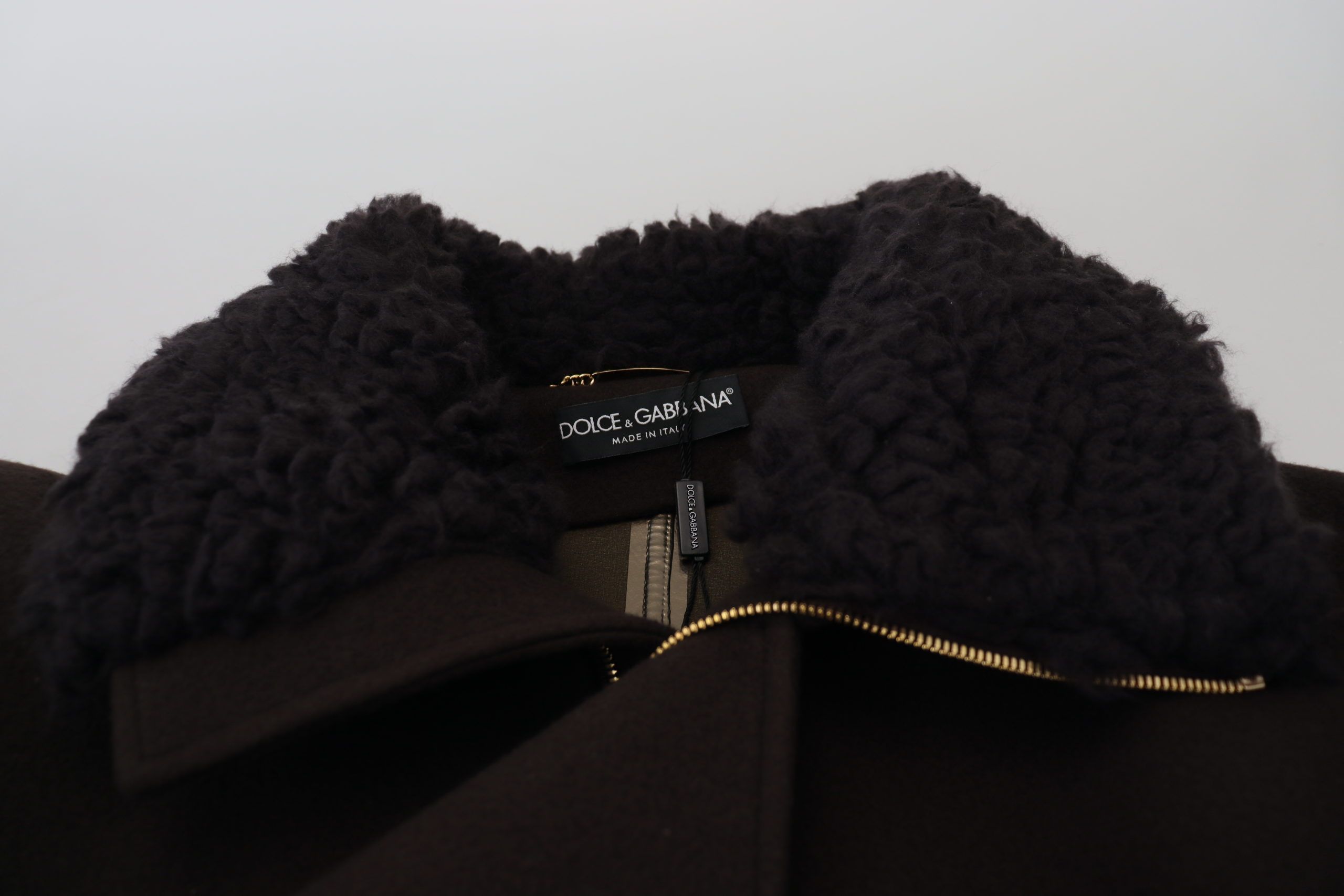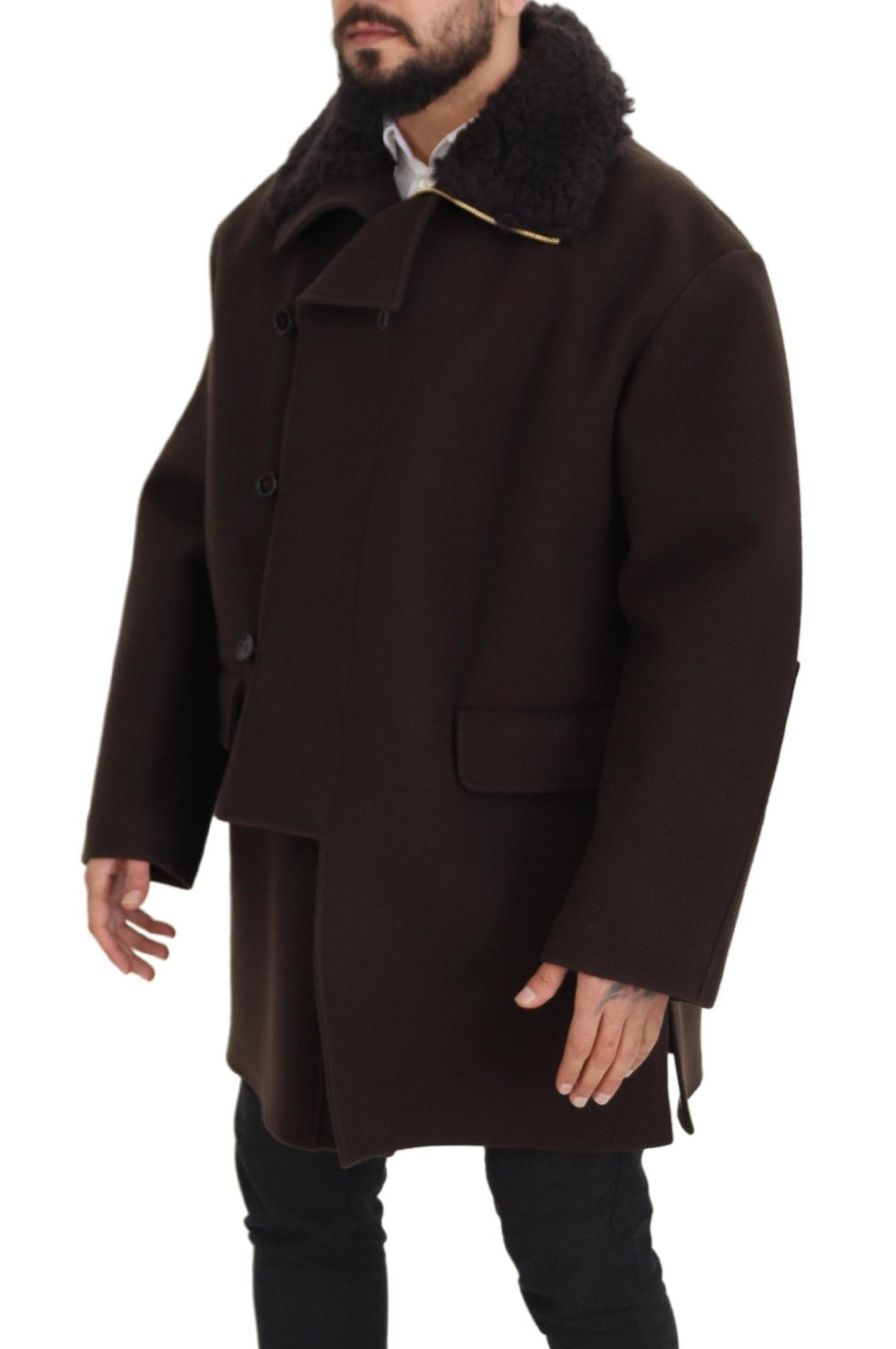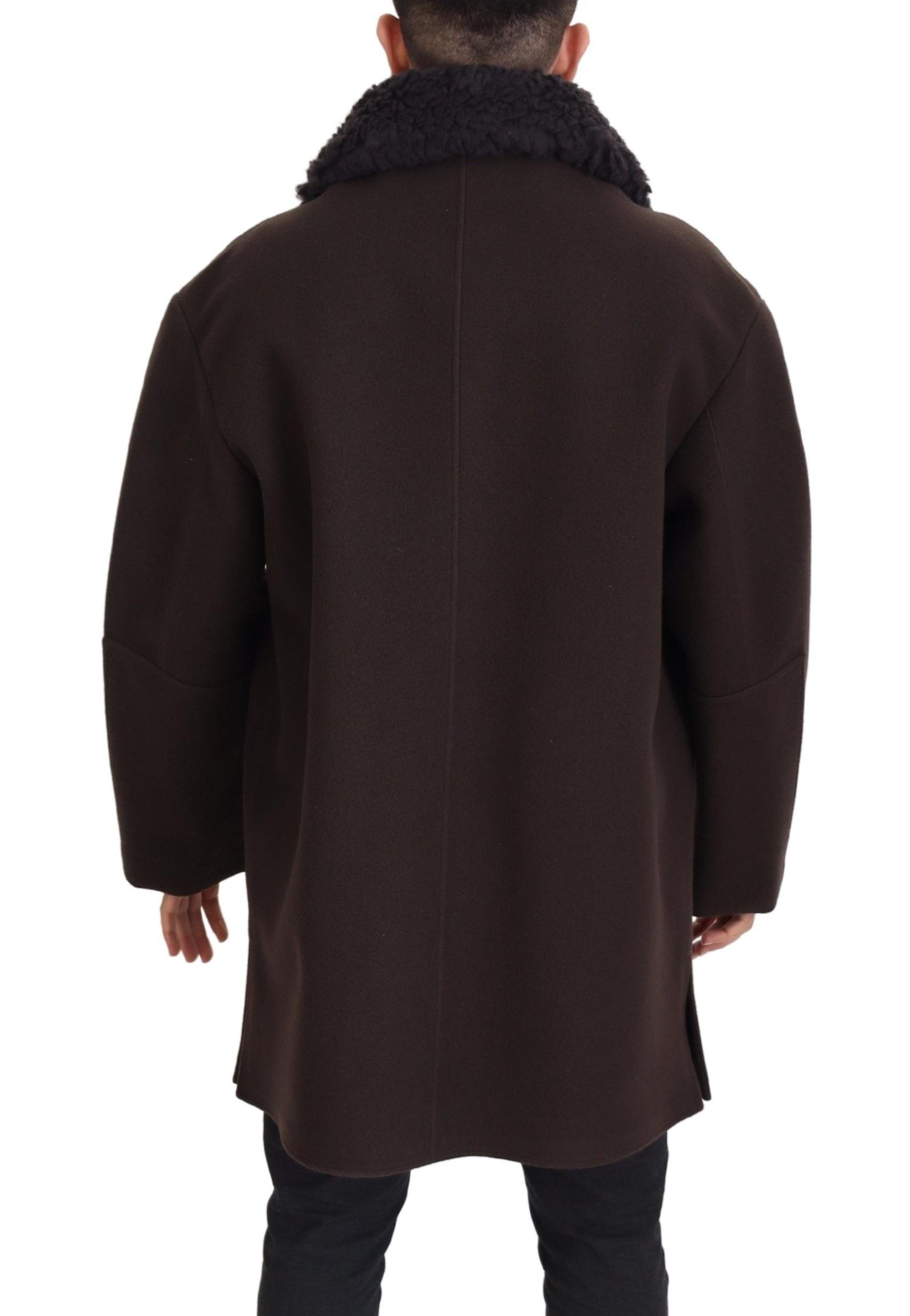 Indulge in the epitome of sophistication with this luxurious shearling coat by Dolce & Gabbana. This stylish outerwear is a standout piece for anyone seeking to elevate their wardrobe. The double-breasted design provides a classic touch to your ensemble, featuring a versatile dark brown hue that complements any outfit.
