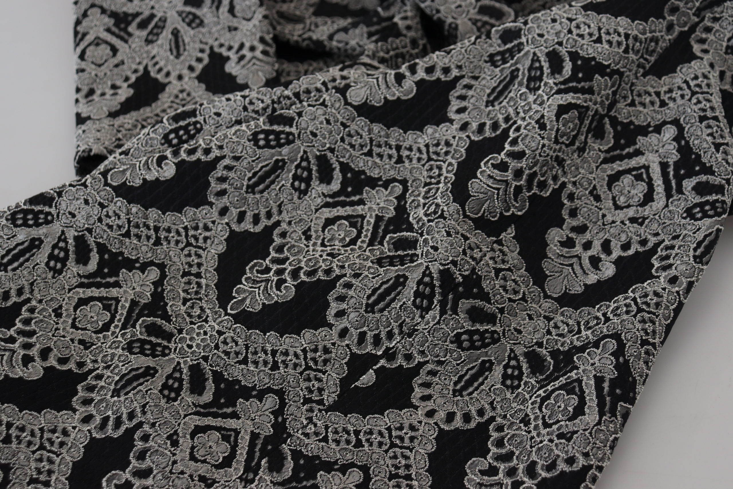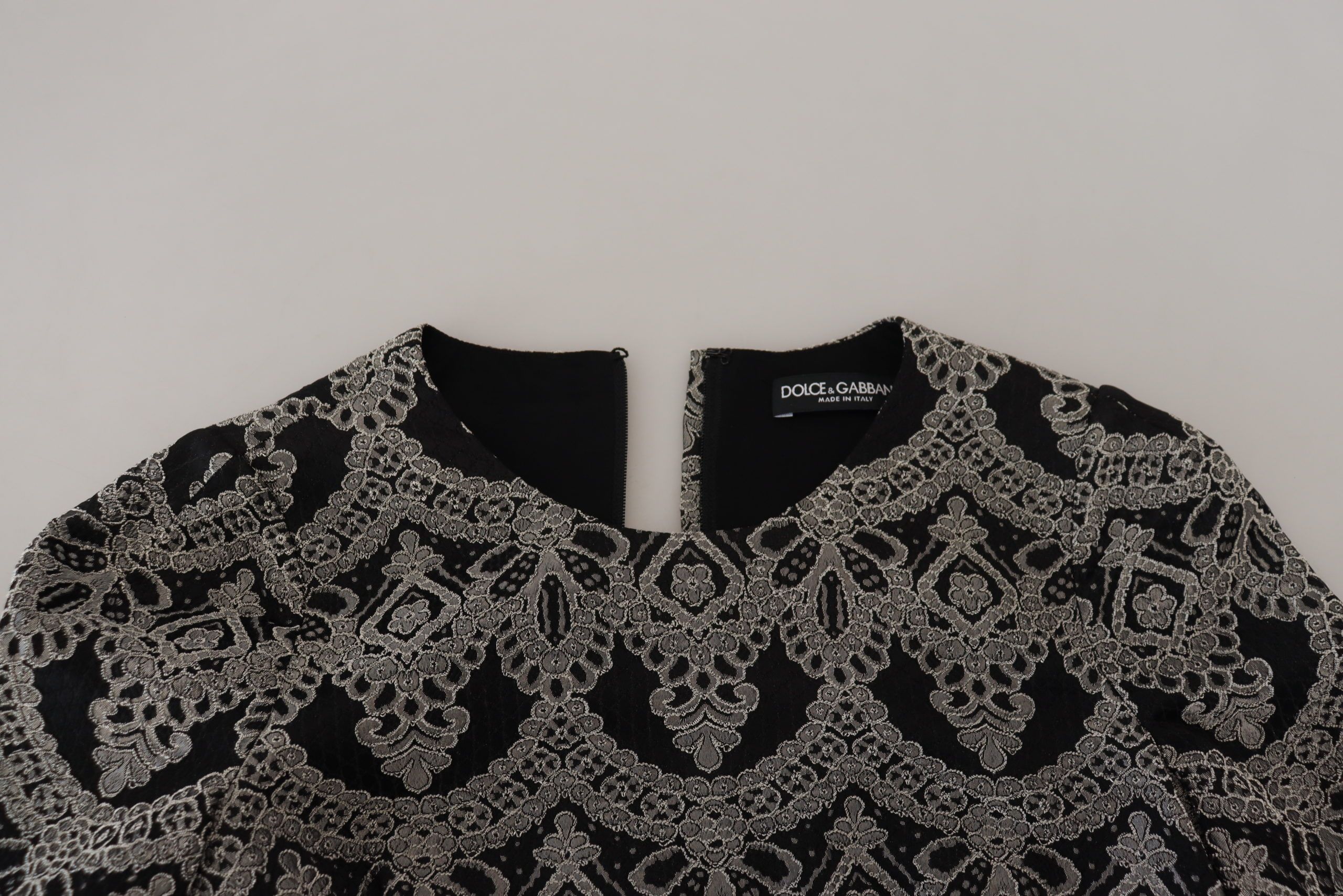 Indulge in the epitome of luxury with this exquisite shift bodycon dress by Dolce & Gabbana. Perfect for any high-end event, the dress features a sophisticated gray and black jacquard pattern. With a snug fit that accentuates your silhouette, this piece is crafted with a blend of acetate, nylon, and elastane for comfort with a slight stretch. The meticulous craftsmanship is evident in every detail, including a convenient zipper closure and the subtle logo accents, embodying the brand’s dedication to elegance and quality. Elegantly made in Italy, this dress is a timeless addition to your wardrobe.