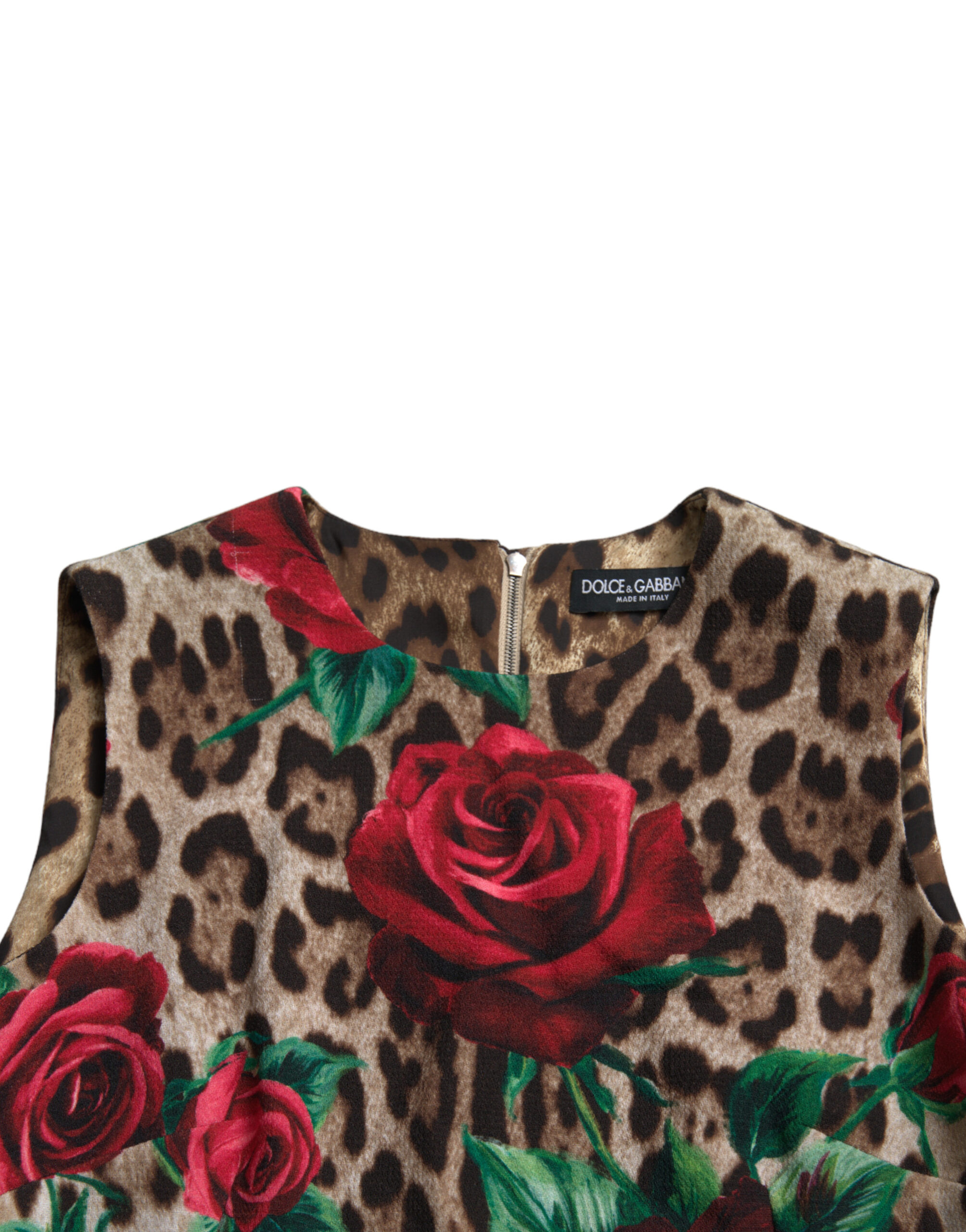 Step into the realm of high-end fashion with this stunning Dolce & Gabbana dress. A masterpiece of design, this piece is embellished with a vibrant mix of leopard print and red roses, making it a perfect statement for those who wish to stand out with elegance. Its A-line silhouette is both classic and flattering, while the zip and hook closure ensure a seamless fit. Crafted in Italy from the finest wool, this dress is a symbol of luxury and sophistication.