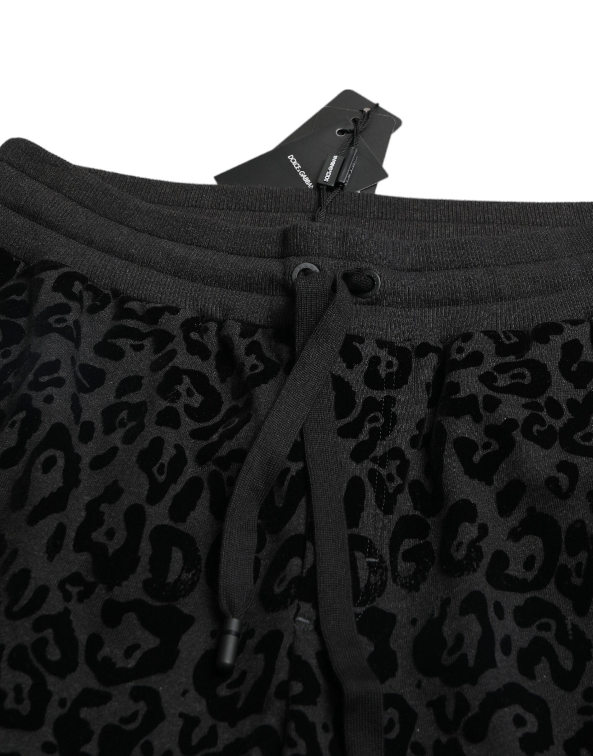 Step into luxury with these absolutely stunning skinny jogger pants by Dolce & Gabbana. Perfect for fashion-forward individuals, these joggers come in a sleek black color with an eye-catching leopard pattern. Crafted from soft 100% cotton, they offer the pinnacle of comfort without sacrificing style. An elastic waist and drawstring closure ensure a perfect fit, while the distinct logo details exemplify Italian craftsmanship. These joggers are not just clothing; they’re a statement.