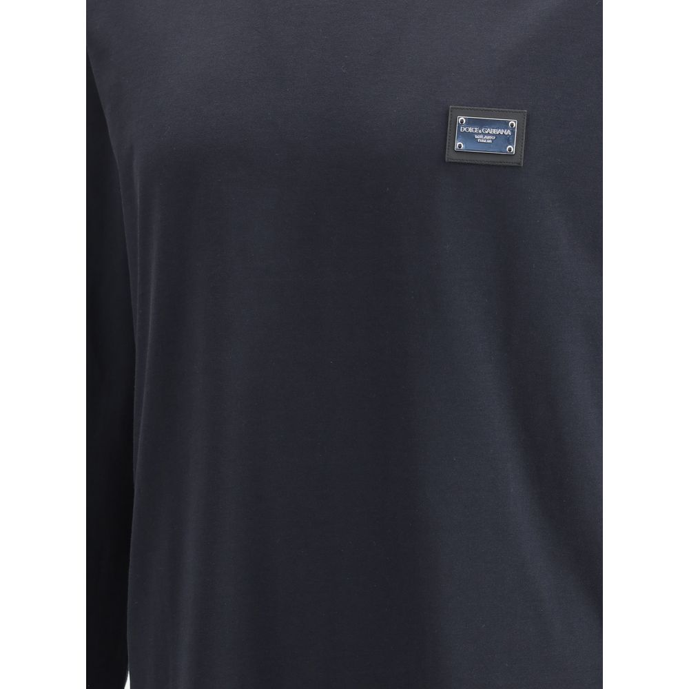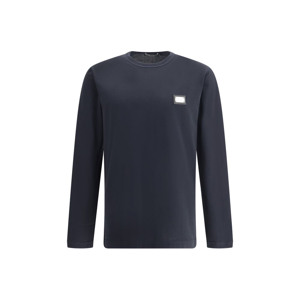 Cotton Long Sleeve Jersey Dolce&Gabbana featuring a ribbed crew neck, a metal hardware plaque with the brand’s iconic D&G monogram engraved and applied to the front, a monochrome pattern, and a regular fit.