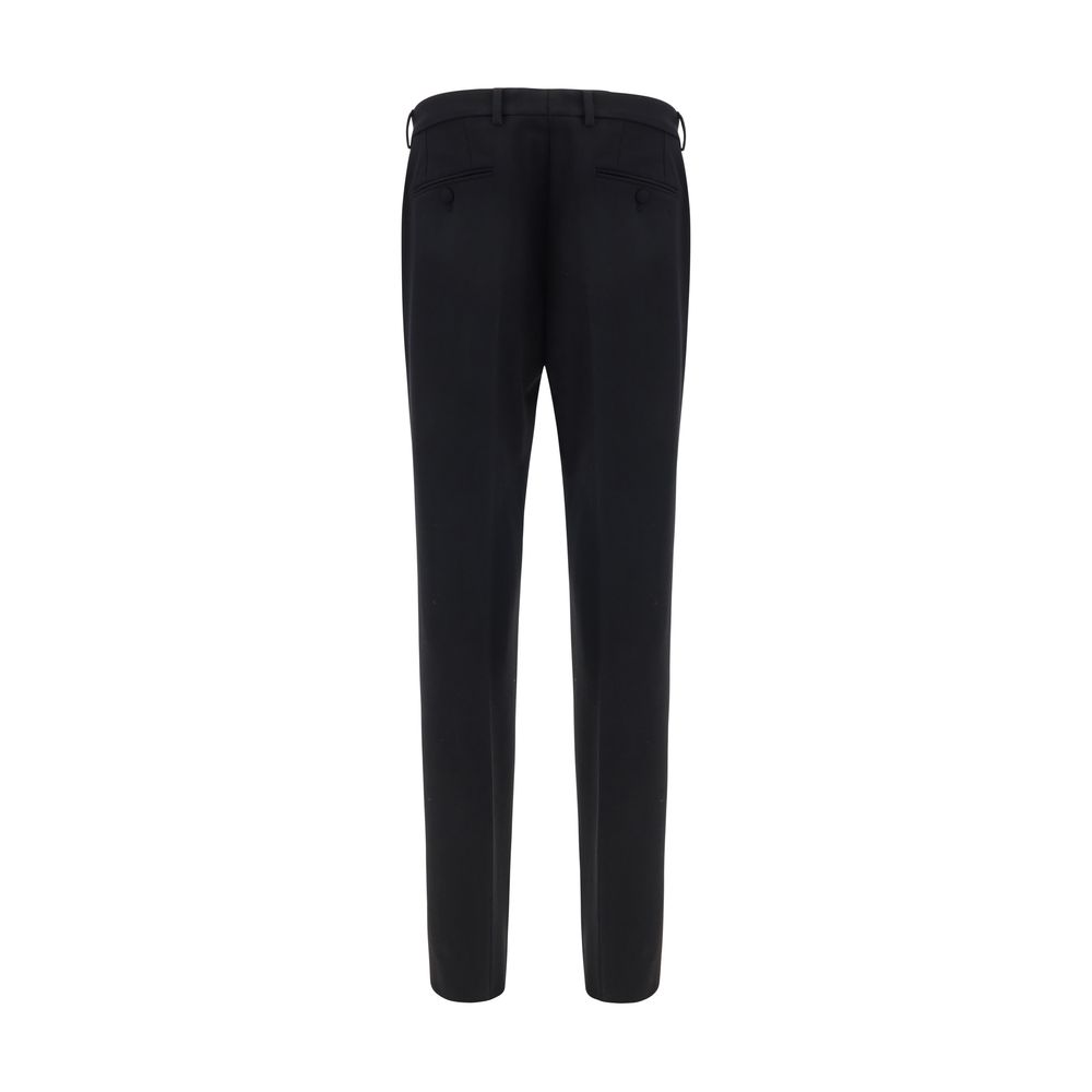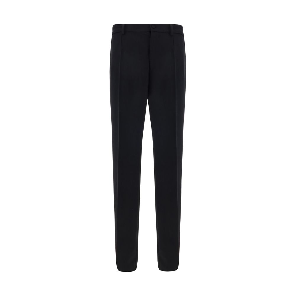 Dolce&Gabbana’s virgin wool Pants combine sophistication and comfort with their regular fit and timeless design. The button-and-zip front closure ensures a secure fit, while the two side slash pockets and two welt pockets on the back add practicality to the garment. Belt loops on the waistband allow you to further customize the fit, while the monochrome pattern maintains an understated and versatile look.