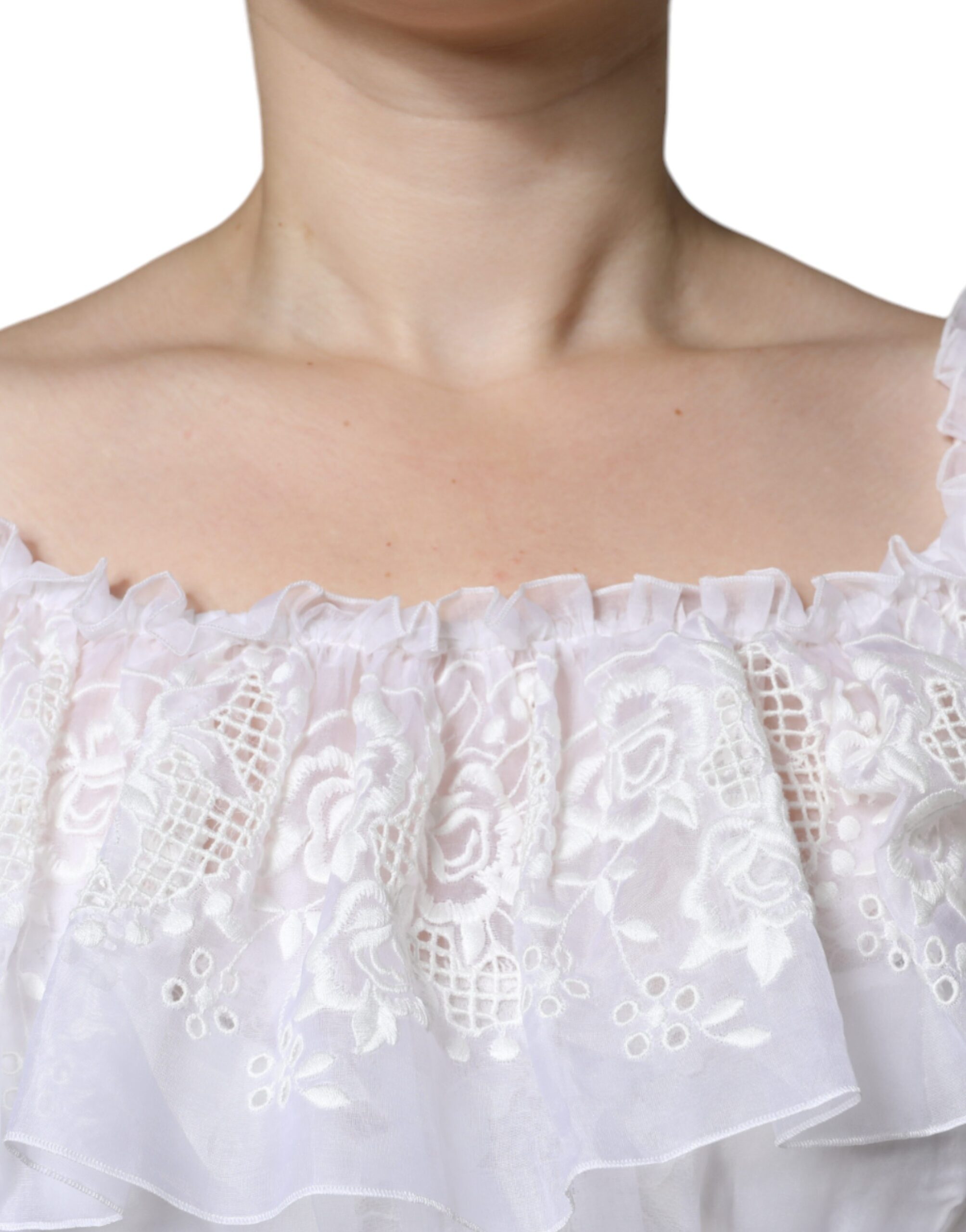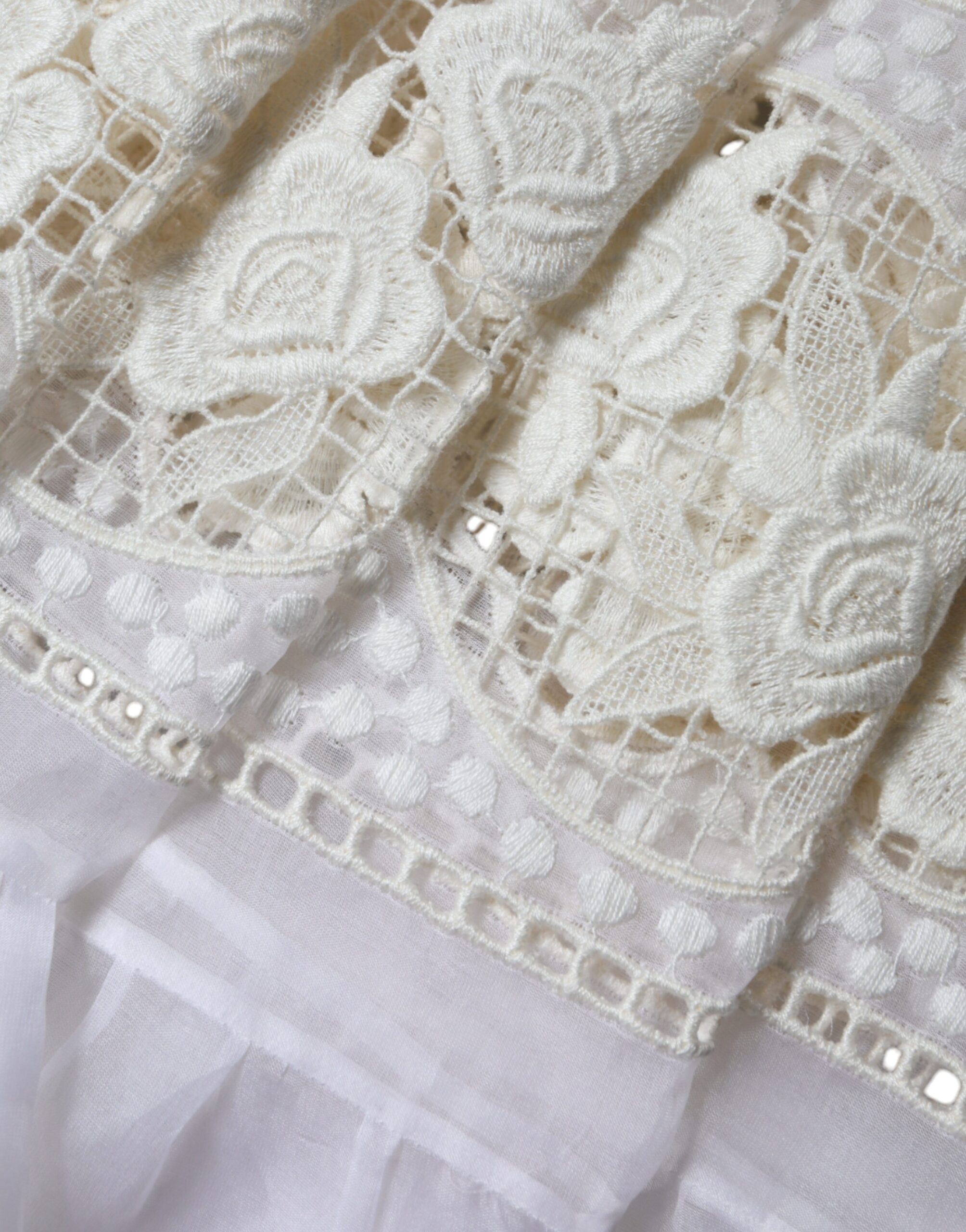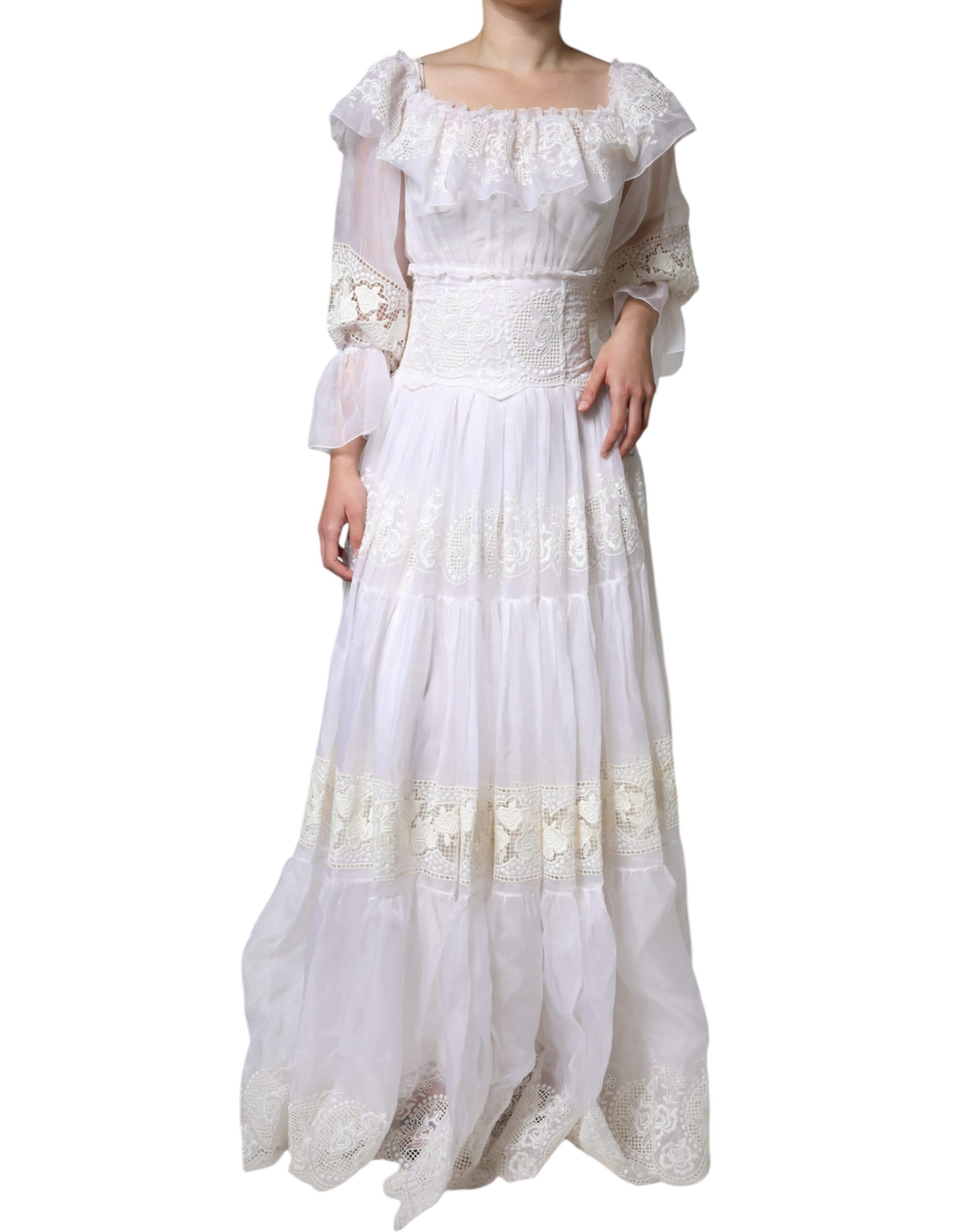 Gorgeous brand new with tags, 100% Authentic DOLCE & GABBANA long, silk blend wedding / summer corset dress with floral lace and puff sleeves in white.