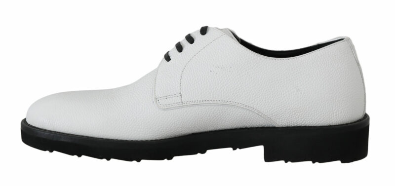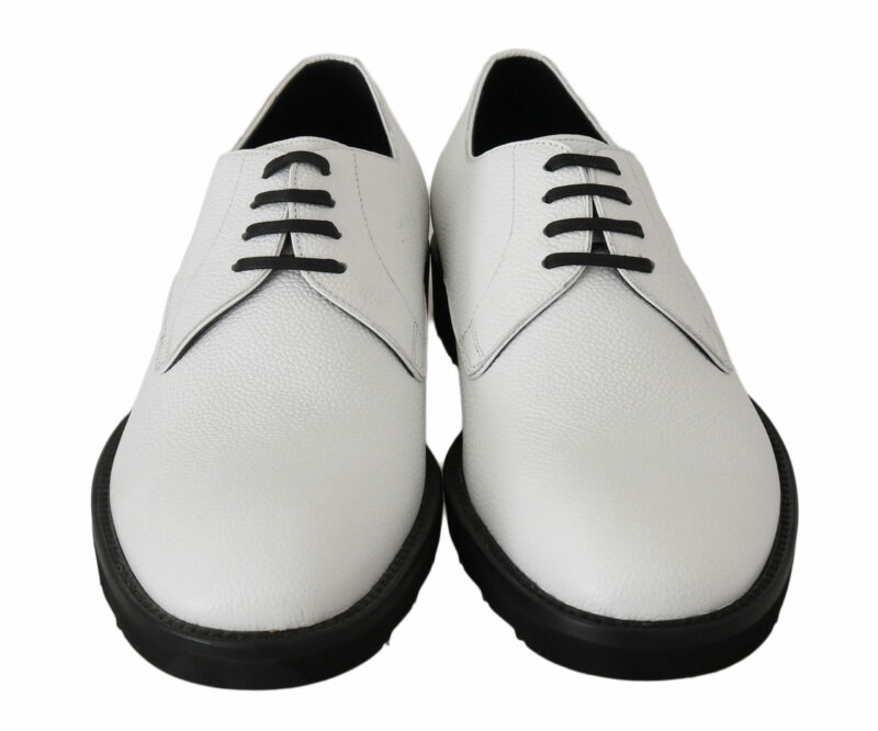 Discover the epitome of luxury Italian craftsmanship with these stunning Dolce & Gabbana men’s formal shoes. Exquisitely designed with a sleek white leather finish, they are perfect for any distinguished event. The comfortable rubber sole adds practicality without sacrificing style. A truly exclusive piece that reflects high craftsmanship.