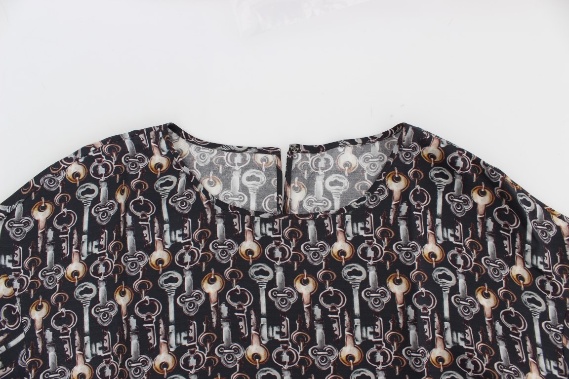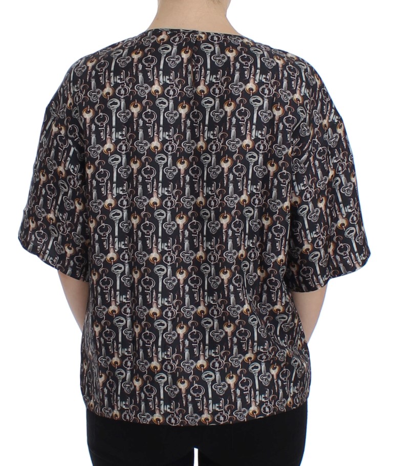 Unveil the essence of elegance with this stunning gray silk blouse, adorned with a unique medieval Keys print, a testament to the exquisite taste of Dolce & Gabbana’s exclusive MainLine Collection. This luxurious short-sleeve top is a perfect blend of high fashion and storytelling, crafted in the heart of Italy with exceptional attention to detail. Elevate your wardrobe with a touch of enchanted Sicily and the superior quality of Dolce & Gabbana.