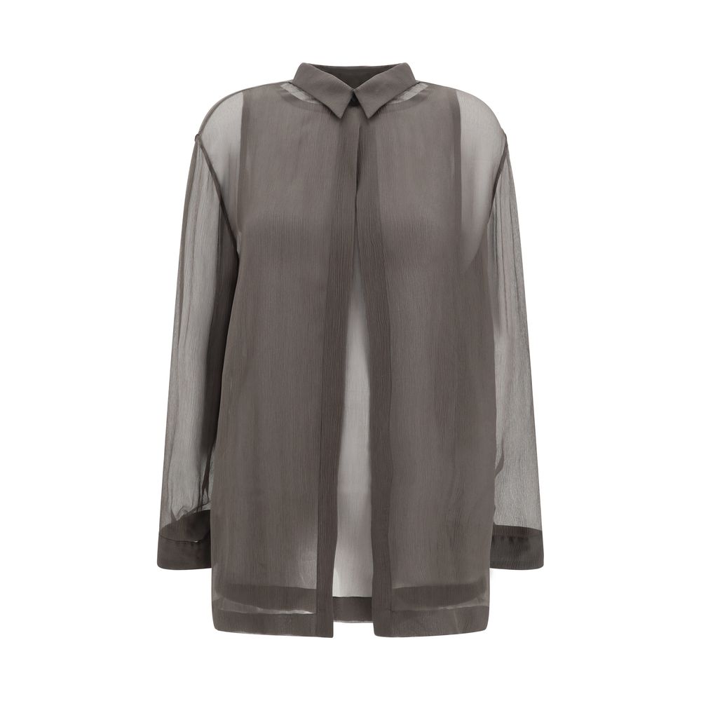 Giorgio Armani’s Shirt and Top set consists of a semi-sheer sleeveless top paired with a shirt with a classic collar and a button front. This look combines elegance and sophistication, with the top adding a modern touch and the shirt maintaining a formal, impeccable line. It is a great choice for an occasion that requires a balance of formality and sophisticated style.