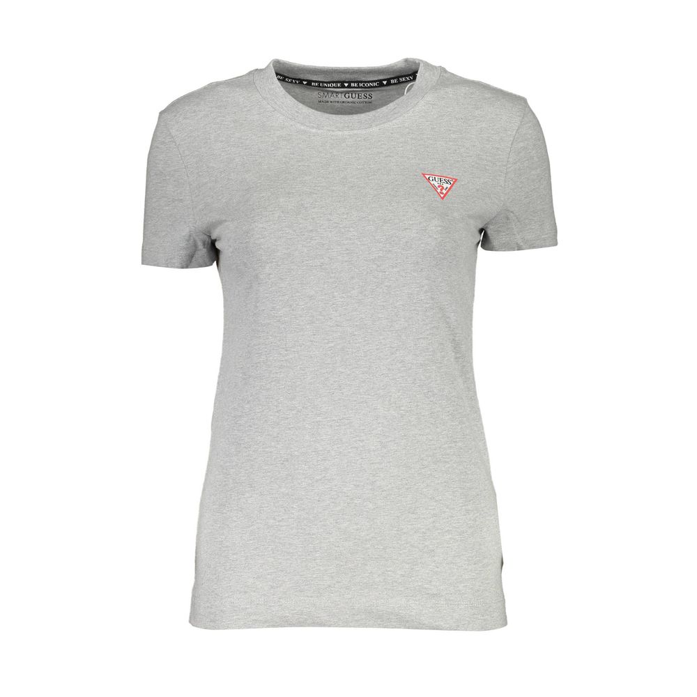 Unveil your bold style with this sleek Guess Jeans short sleeve t-shirt. A perfect union of comfort and chic, this round-necked top boasts a statement print crowned by the iconic Guess logo. Crafted from a sumptuous blend that caresses the skin, revel in the stretch and softness provided by 95% organic cotton and 5% elastane. Immerse yourself in the timeless hue of gray that promises to elevate your casual ensemble to a trendy masterpiece. This piece isn’t just a t-shirt; it’s a fashion statement.