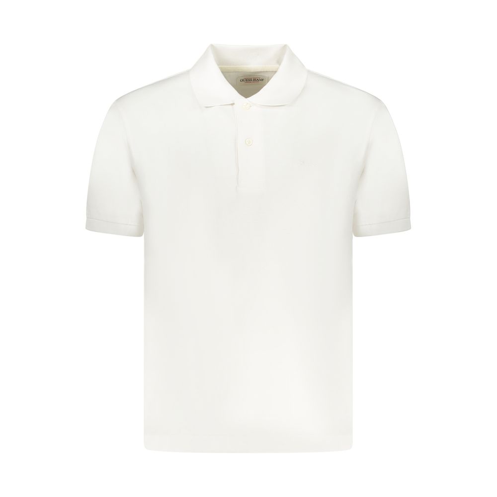 Elevate your style game with Guess Jeans, where classic meets contemporary. This sleek short-sleeve polo is a testament to timeless fashion, refreshed for the modern man. Featuring a sharp two-button placket, each stitch is crafted to perfection. The iconic Guess embroidery and bold logo take center stage, lending a touch of luxury to your casual attire. Tailored from 100% premium cotton, it promises ultimate comfort and breathability. Proudly originating from Bangladesh, this polo shirt is your ticket to refined sophistication in the purest shade of white.