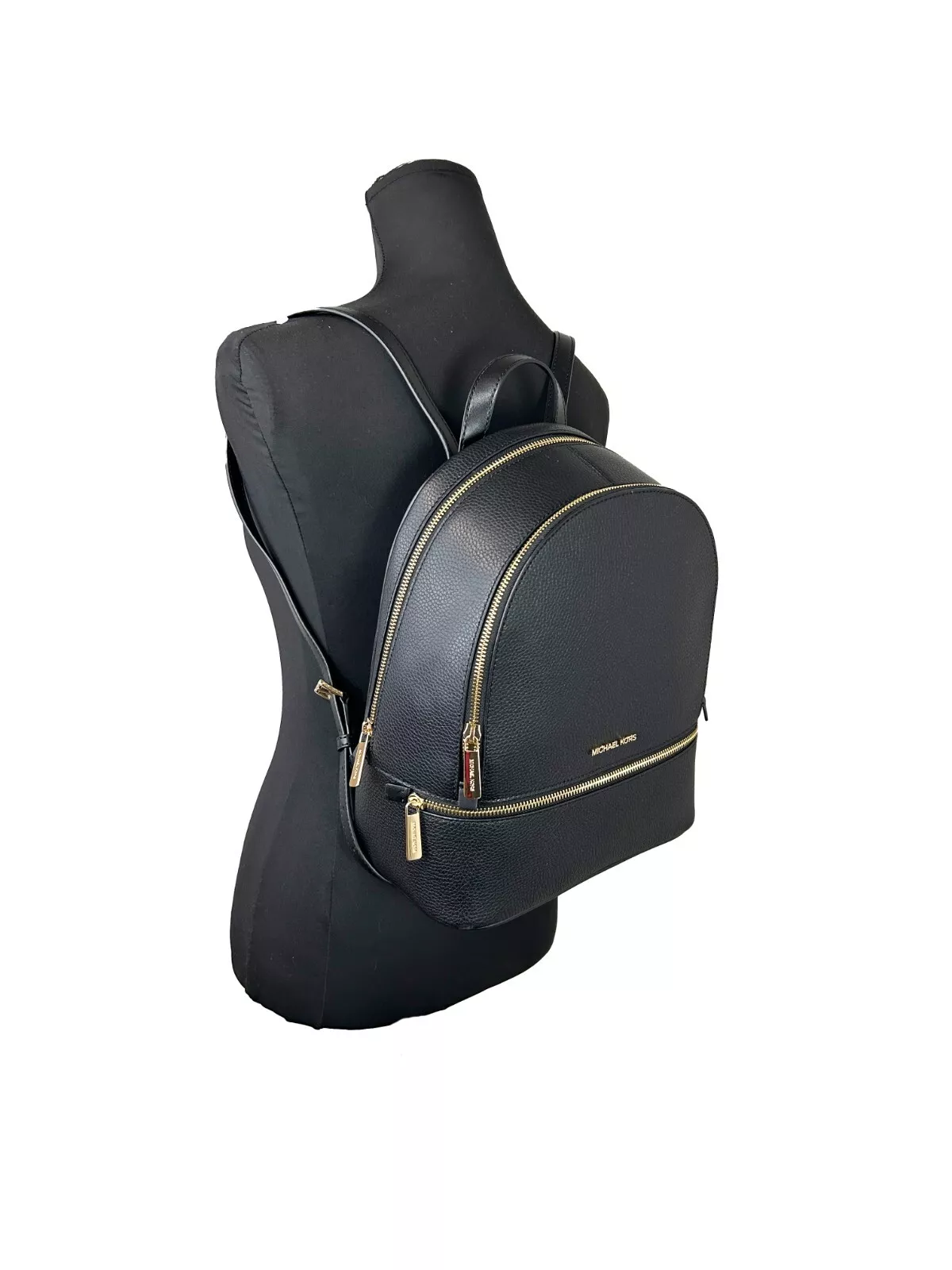 Style: Michael Kors Rhea Medium Zip Pocket Backpack Bag (Black)