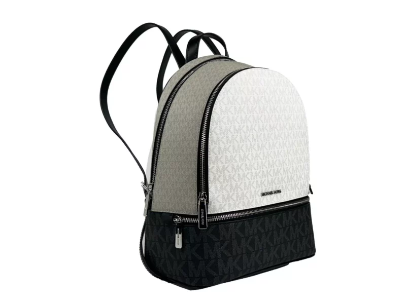 Style: Michael Kors Rhea Medium Zip Pocket Backpack Bag (Optic White Multi)