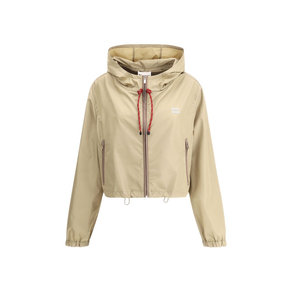 Miu Miu’s Hooded Waterproof Jacket is a modern, versatile design perfect for a casual, refined look. The drawstring-adjustable hood offers extra protection, while the front zipper closure allows for a practical and adjustable fit. Two side welt pockets add functionality without compromising the garment’s clean aesthetic. Elasticized cuffs and an adjustable drawstring hem ensure a comfortable and customizable fit. Contrasting brand monogram on the front adds a distinctive and luxurious touch