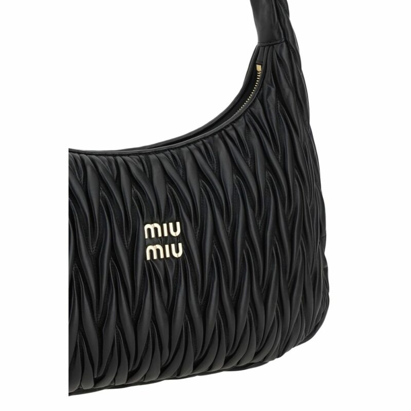 Miu Miu’s leather Shoulder Bag features refined matelassé workmanship that creates a sophisticated, three-dimensional effect. Featuring a top handle and zipper closure, it offers a single practical and roomy interior compartment. The brand’s iconic logo is applied on the front, adding a touch of recognition and luxury. An elegant and modern accessory, perfect to complete a refined look.