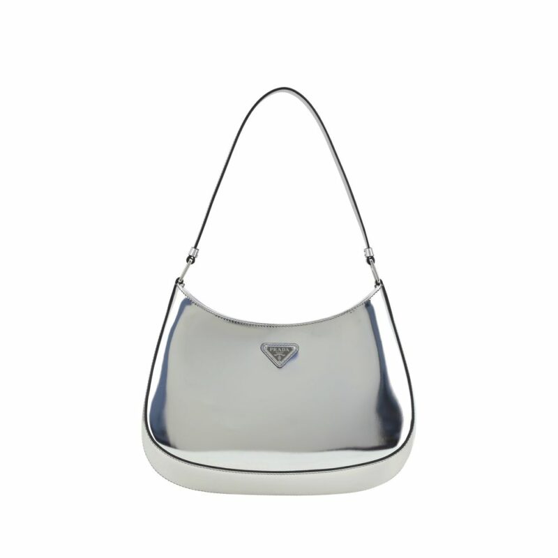 Prada’s leather Shoulder Bag is a sleek and sophisticated accessory made of patent leather that gives it a polished, modern look. It features a rigid top handle, which adds a touch of structure to the design. The magnetic button closure makes the bag practical and secure. On the front, the brand’s iconic triangular plaque stands out, highlighting its distinctive character. The geometric design makes it a unique and contemporary item. Inside, the bag offers single compartment, perfect for keeping everything in order. A perfect mix of functionality and style.