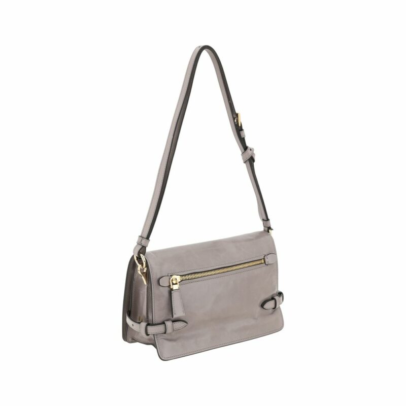 Leather Shoulder Bag by Prada, an adjustable flat shoulder strap, front closure by magnetic flap, dual interior compartments, front closure by magnetic flap, a welt pocket on the back with zipper, iconic three-dimensional, enameled brand plaque applied to the front.