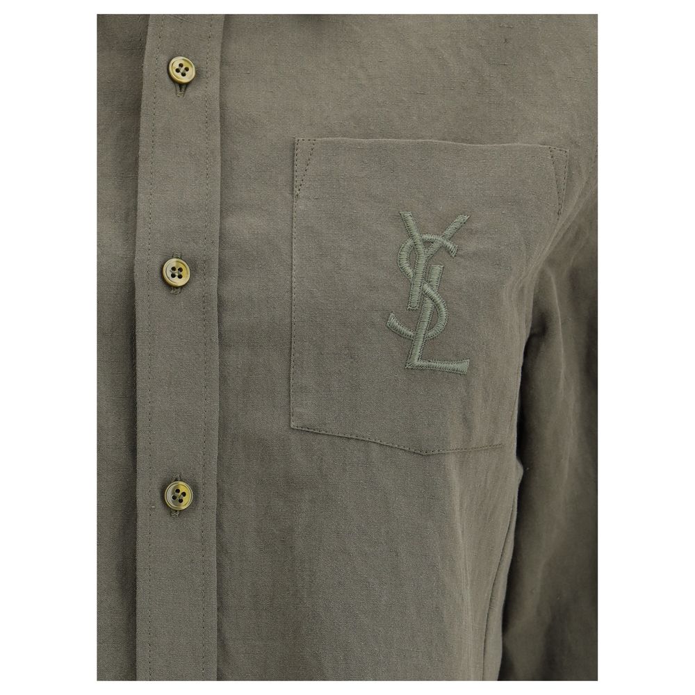 Saint Laurent’s cotton linen Shirt is an elegant and sophisticated piece with a classic collar that lends a touch of sophistication. The front button closure adds practicality and style, while the welt pocket with iconic tone-on-tone YSL embroidery detail lends a distinctive and recognizable accent. Appliqué cufflinks complete the design, adding a touch of class and formality to the garment.