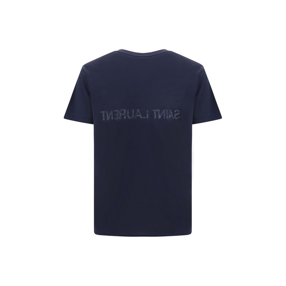 Cotton T-Shirt by Saint Laurent, ribbed crew neck, iconic brand monogram in contrast on front and back, regular fit.