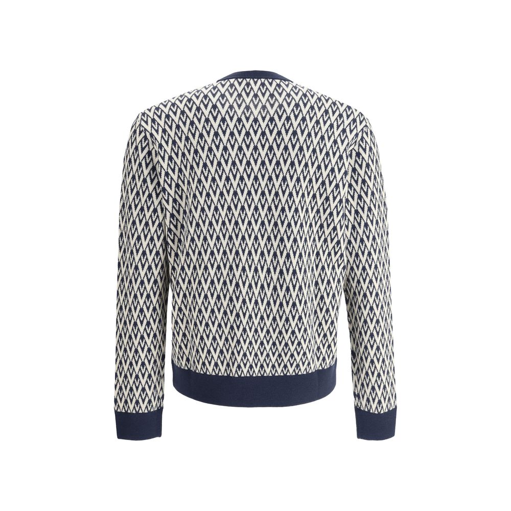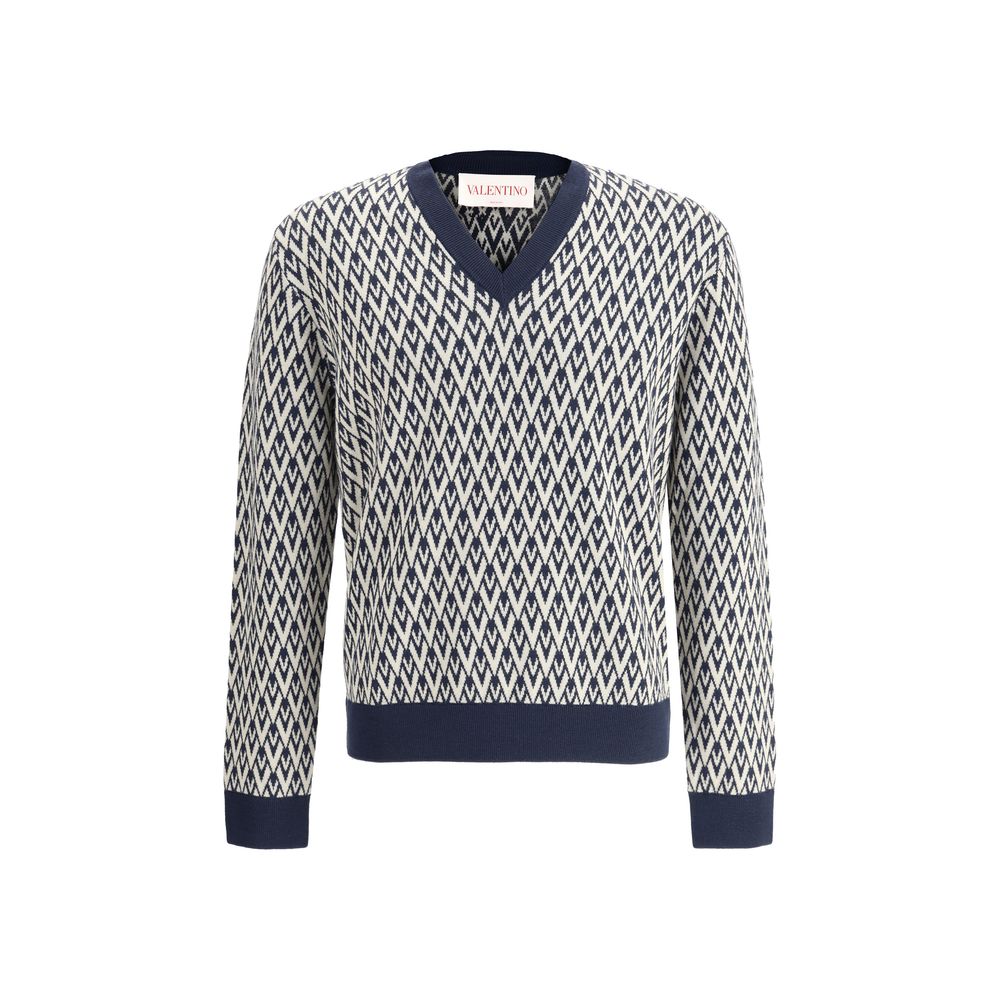 Virgin Wool Sweater by Valentino featuring contrasting V-neck on front, ribbed cuffs, ribbed hem, all-over repeat jacquard iconic VLogo jacquard weave, regular fit.