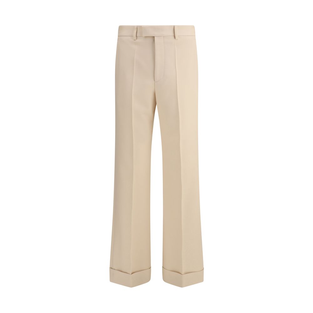 Valentino’s Virgin Wool Pants are an elegant and refined garment. The hidden zipper and hook-and-eye closure offers a clean, sophisticated fit. They feature two slash pockets on the front and two slit pockets on the back panel for a touch of practicality and style. The turn-up hem adds a neat, classic detail perfect for completing a formal chic look.